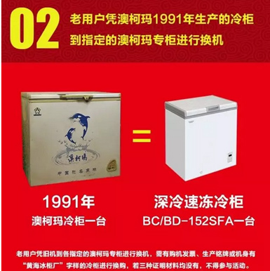 凭1991年以前生产的冷柜(如BD-150L、BD-200L、BD-304L)(不含出厂日期是1987年生产的),可奖励BC/BD-152SFA一台。
