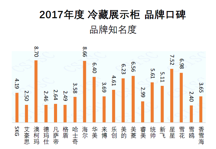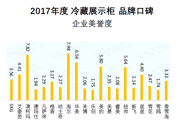 本期研究报告筛选了澳柯玛、海尔、美的、星星、美菱等20个冷藏展示柜品牌作为研究对象,报告显示,冷藏柜市场竞争日趋激烈,澳柯玛、海尔、美的、美菱等品牌实力雄厚、产品创新能力突出,其口碑日益稳定和上升。