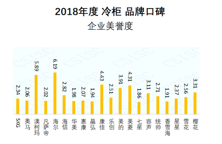 口碑总指数:澳柯玛、海尔、星星在口碑总指数中位居前三。澳柯玛、海尔、星星、美的、美菱、容声、海信、樱花在近两期中表现稳定,口碑总指数位居前十。